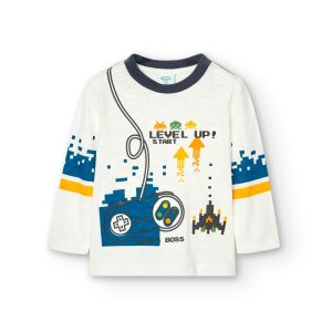 A gola redonda facilita vestir o pequeno, fazendo desta camisola uma opção prática e estilosa.