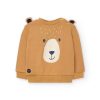 Camisola de malha para menino em tons mostarda com motivos de animais, ideal para as estações do outono e inverno.
