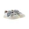 Aperta com duas tiras aderentes, que proporcionam maior fixação e facilitam o calçar, incentivando a sua autonomia.